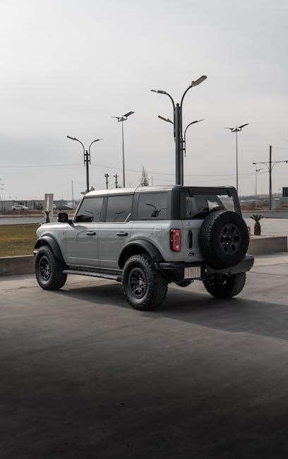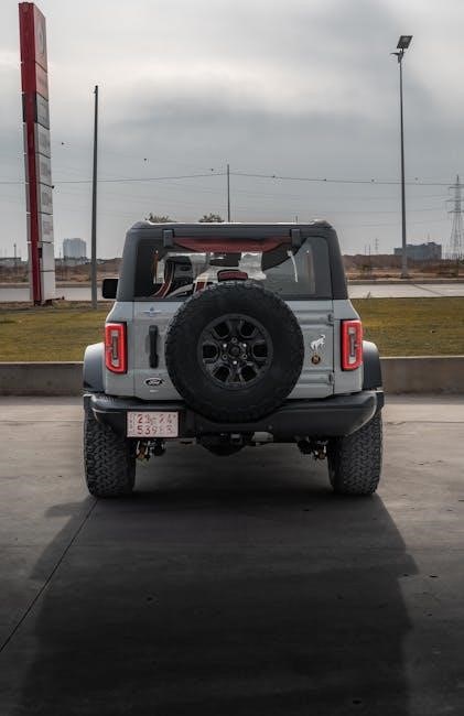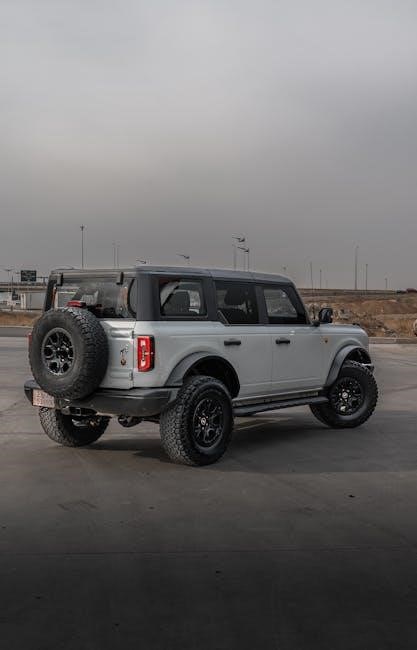 When using the manual, pay attention to the sections that reference your vehicle’s specific details, such as the VIN. The VIN can be used to decode vehicle specifications and ensure that the information you’re accessing is tailored to your Bronco. This is particularly useful for understanding maintenance schedules, tire pressure recommendations, and other model-specific guidelines.